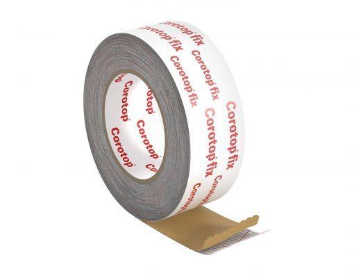 Corotop fix — самоклеющаяся односторонная лента, армированная полиэтиленовым волокном для склеивания и направы полипропиленовых пленок , полиэтиленовых и соединения их с другими синтетическими материалами. Применяется для склеивания и направы повреждений в кровельных мембранах, кровельных и пароизоляционных пленках. Использовать только внутри помещения.