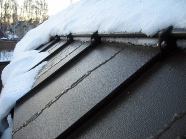 Производятся трубчатые снегозадержатели с использованием плоскоовальной трубы 25х45 мм с толщиной стенки 1 мм. Такая