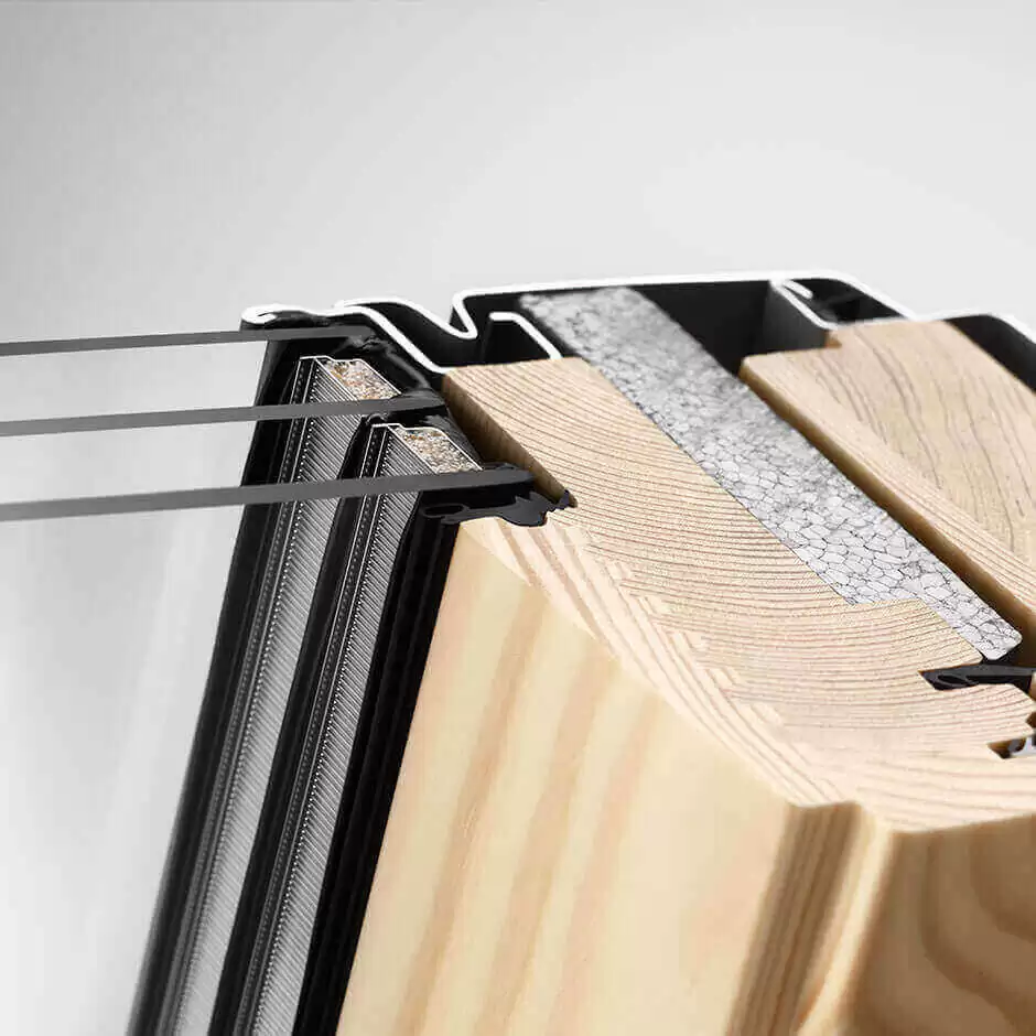 VELUX GLL 1061B – поворотное мансардное окно, оснащенное конструкцией ThermoTechnology и дополнительным уплотнением, обеспечивающим 4-й высший класс герметичности. Изготовлен из ламинированной, пропитанной и лакированной древесины сосны. Ug=0,6, Uw=1,1.