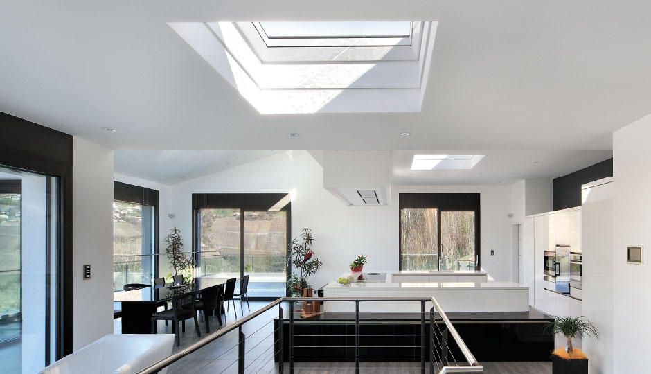 Вы добьетесь оптимального сочетания дневного света и свежего воздуха, добавив зенитное окно VELUX INTEGRA ® в группу глухих зенитных окон.