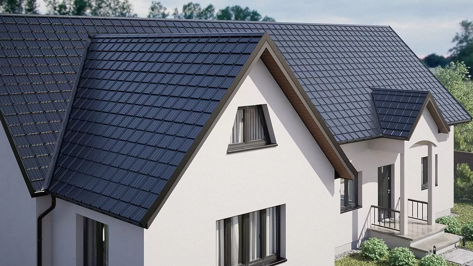 Дизайн волны металлочерепицы Estima дает чувство безопасности и создает на скатах кровли компактную и высоко декоративную структуру, которая похожа на прочную сеть. Волна хорошо выглядит как на простых, так на сложных кровлях. Estima дополняет многие фасадные решения, благодаря чему создается уникальное эстетическое впечатление.