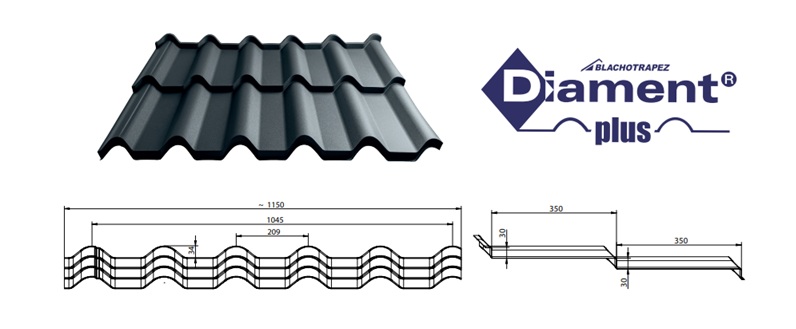 Металлочерепица Diament Plus 30 в модульной версии представляет собой сочетание элегантности и функциональности. Благодаря увеличенному продольному наклону (30 мм) и современной технологии производства, металлочерепица отличается долговечностью и устойчивостью к неблагоприятным погодным условиям.