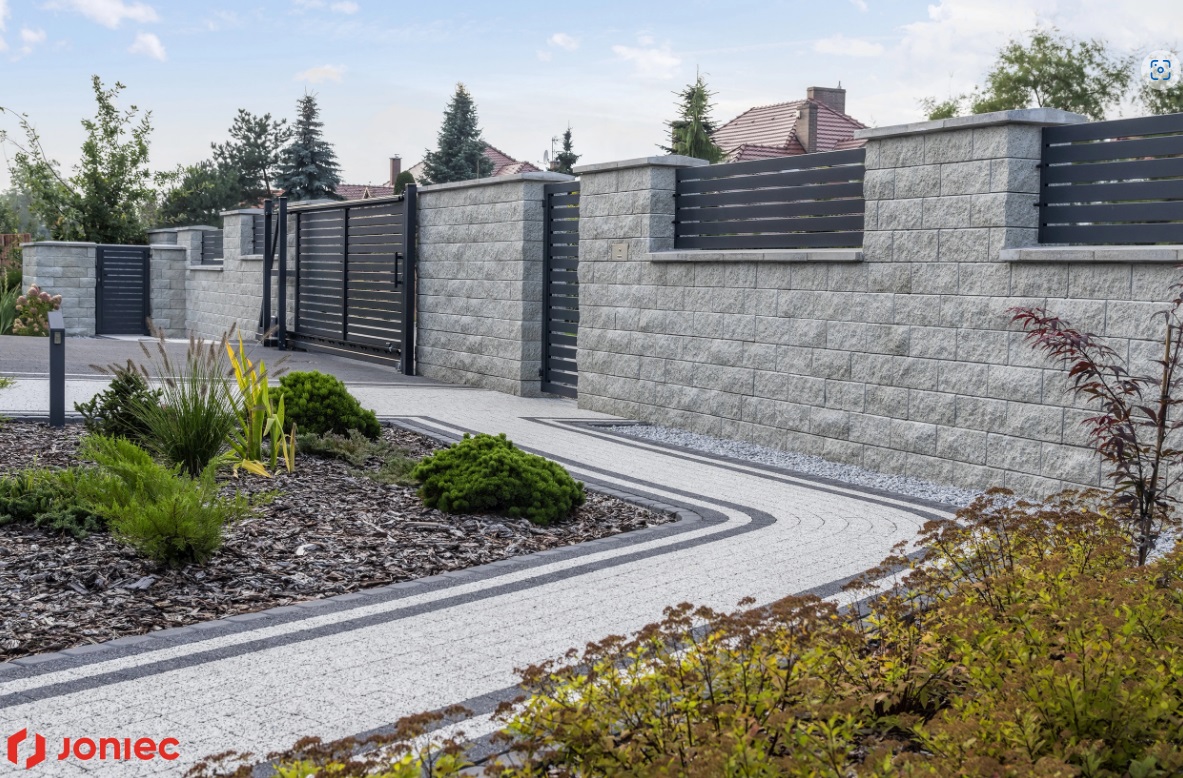 Система GORC de Luxe GL22 от компании JONIEC включает в себя двухэлементные блоки для столбов и блоки для стен, что позволяет гибко проектировать забор в соответствии с индивидуальными потребностями. Края блоков, расщепленные на заводе, исключают необходимость затирки швов, что ускоряет процесс сборки и повышает эстетический эффект. Название системы, GORC de Luxe, как нельзя лучше отражает характер продукта, который является результатом механического расщепления, придающего блокам естественные и уникальные трещины, приближая их к красоте натуральных песчаников.