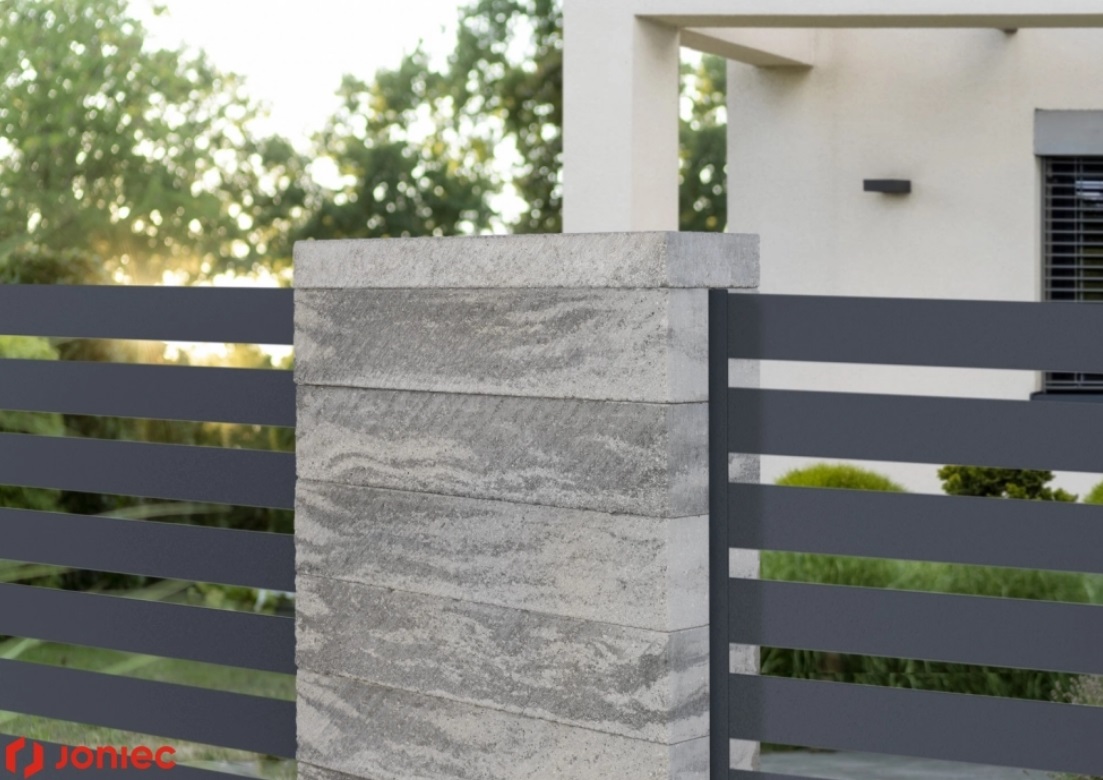 Блоки для забора ROMA Nova Joniec — это современная и инновационная система ограждения. Их внешний вид и размер являются новинкой и отличаются от большинства систем, представленных на рынке. Это выгодно отличает изготовленный из них забор и придает объекту неповторимый характер. Доступные цвета блоков для забора ROMA Nova идеально гармонируют с модным серым цветом, который до сих пор один из самых популярных в современном дизайне.